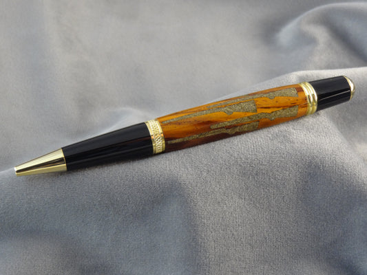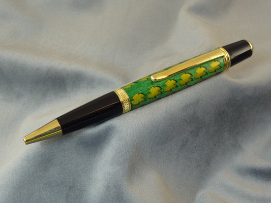 Gold Leaves in Green Wood Ink Pen
