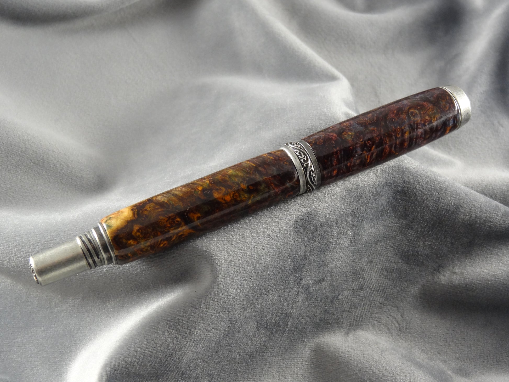 Get your hands on this beautiful, handsome, sophisticated writing instrument that are perfect for anyone who likes a well-balanced pen. Mounted on an Antique Silver pen body with a postable cap to keep the balance.