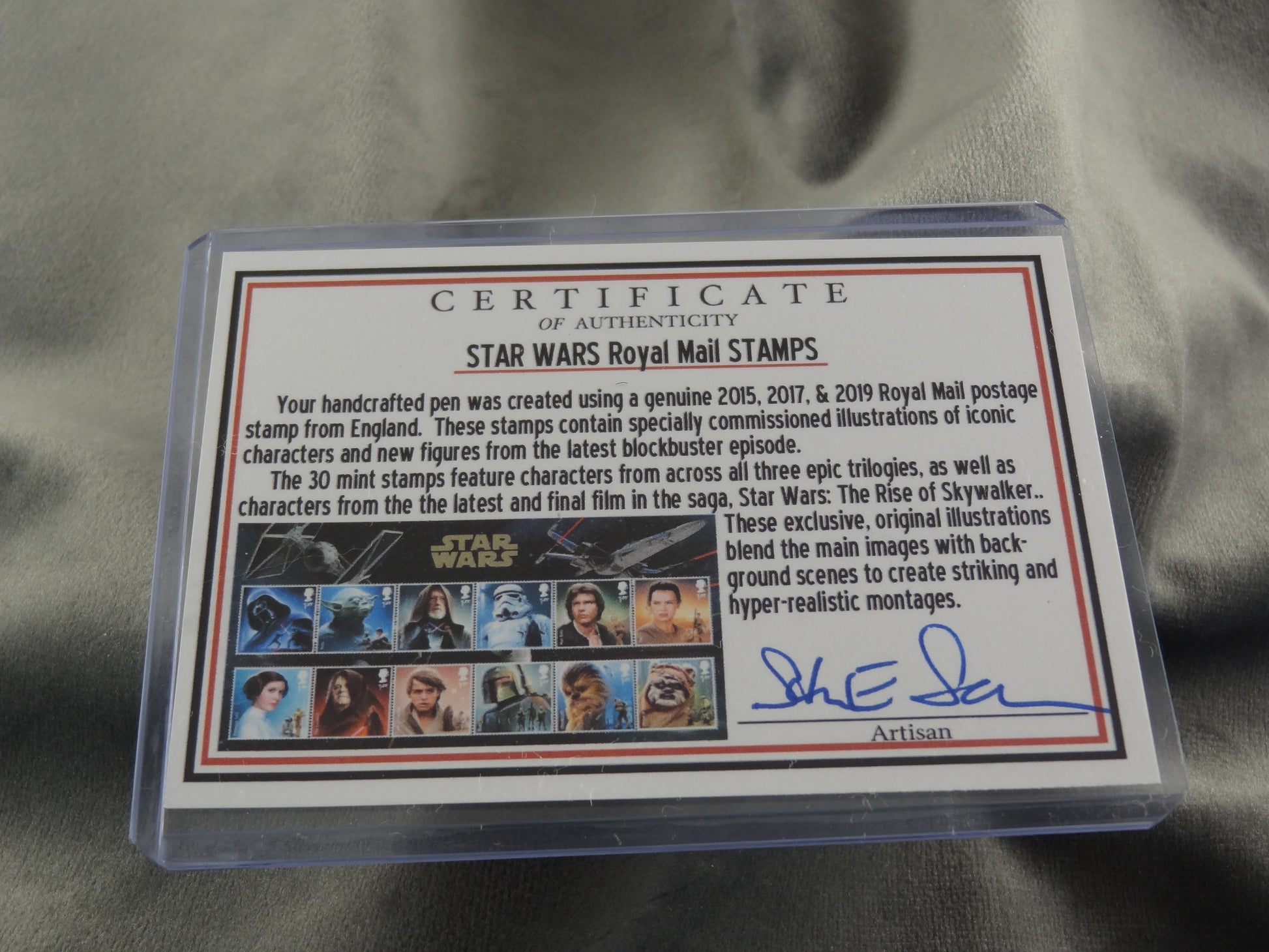 The main body contains an English Postage Stamp for Star Wars’ Stormtrooper. Pen comes with a certificate of authenticity. Any Galactic Star Wars fan will love to battle the villain when using this pen.